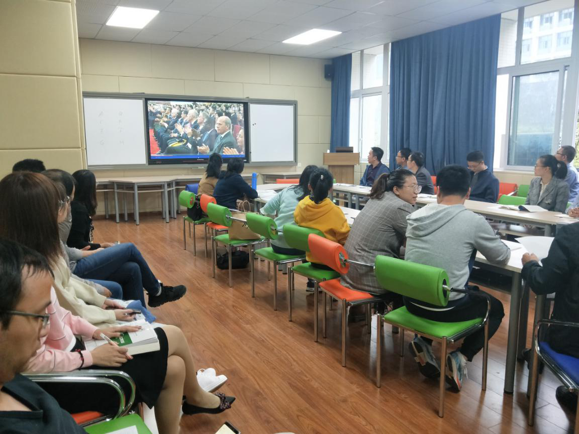 随后全体教职工观看了2019国家勋章和国家荣誉称号颁授仪式,崇尚英雄才会产生英雄,争做英雄才能英雄辈出。党和国家历来高度重视对英雄模范的表彰。仪式以最高规格褒奖英雄模范,就是要弘扬他们身上展现的忠诚、执着、朴实的鲜明品格。英雄模范们用行动再次证明,伟大出自平凡,平凡造就伟大。只要有坚定的理想信念、不懈的奋斗精神,脚踏实地把每件平凡的事做好,一切平凡的人都可以获得不平凡的人生,一切平凡的工作都可以创造不平凡的成就。