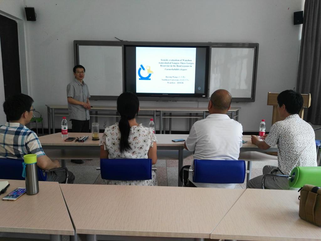 2018年06月29日下午,437bwin必赢国际柔性引进的东南大学王大勇教授在百安校区理科楼B1-216室举办了以《秀丽线虫在三峡水库污染物毒理效应评价中的应用》为题的学术讲座,公司部分师生参与了本次讲座。