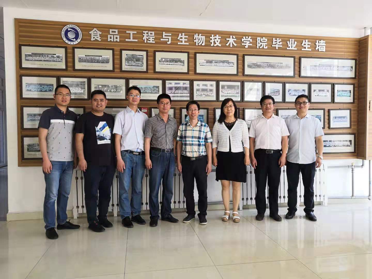 为了学习食品科学与工程本科专业的工程教育认证以及IFT认证等方面工作经验,进一步加强院校之间的交流合作,2019年7月3日,公司经理肖国生,副经理周浓,食品系主任王兆丹,学工办主任李华林,基础实验教学中心主任曲留柱等5人到天津科技大学食品工程与生物技术公司交流学习。