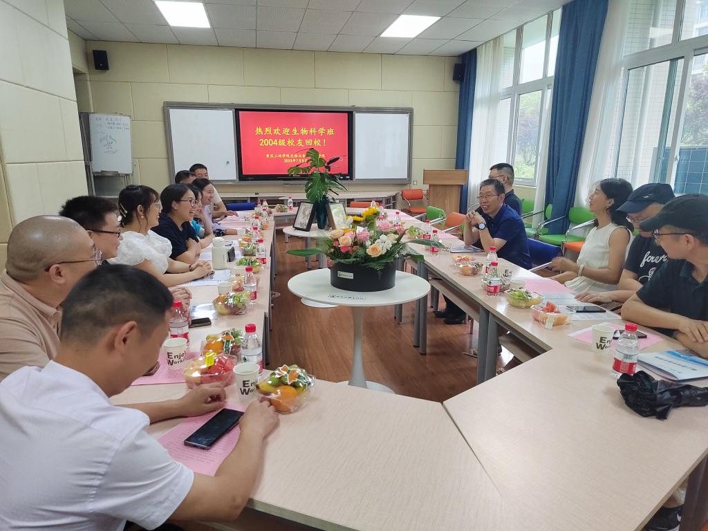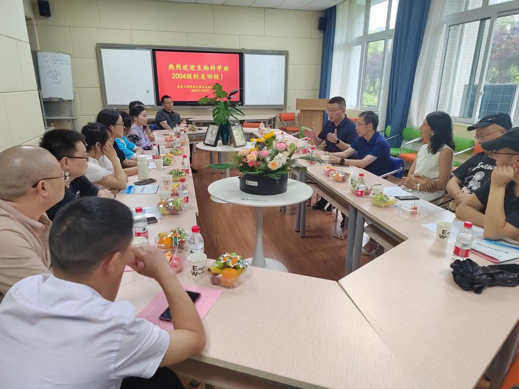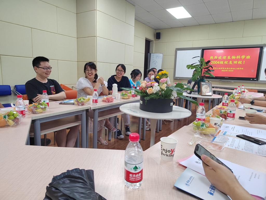 7月8日下午,公司在慎思楼2栋216召开2004级生物科学班员工返校座谈会,热烈欢迎10余名员工代表回母校,公司党总支书记骆孟鑫、经理肖国生,教师代表甘丽萍、李彦杰、刘仁华参会,会议由肖国生主持。
