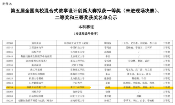 杨玲教师团队参赛的课程为《植被生态修复工程》,该课程是在公司绿色教育、创新教育和应用型转型背景下开设的专业特色课。课程依托公司科研团队关于三峡水库消落带植被生态修复研究成果,开展混合式创新教学设计。3年的混合式教学始终以员工为主体,员工无论是综合成绩,还是专业技能、综合素质都得到有效提升。《植被生态修复工程》课程也于2023年荣获第五届全国高校混合式教学设计创新大赛三等奖,并立项为2023年重庆市一流课程。