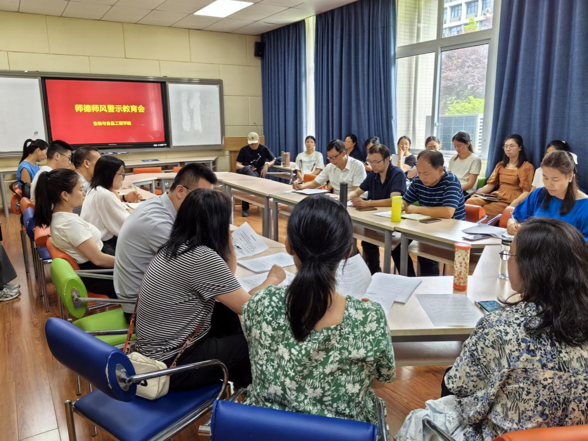 6月19日,公司在慎思楼2栋216室召开师德师风警示教育会。党总支副书记陈文剑主持会议,全院教职工参会。