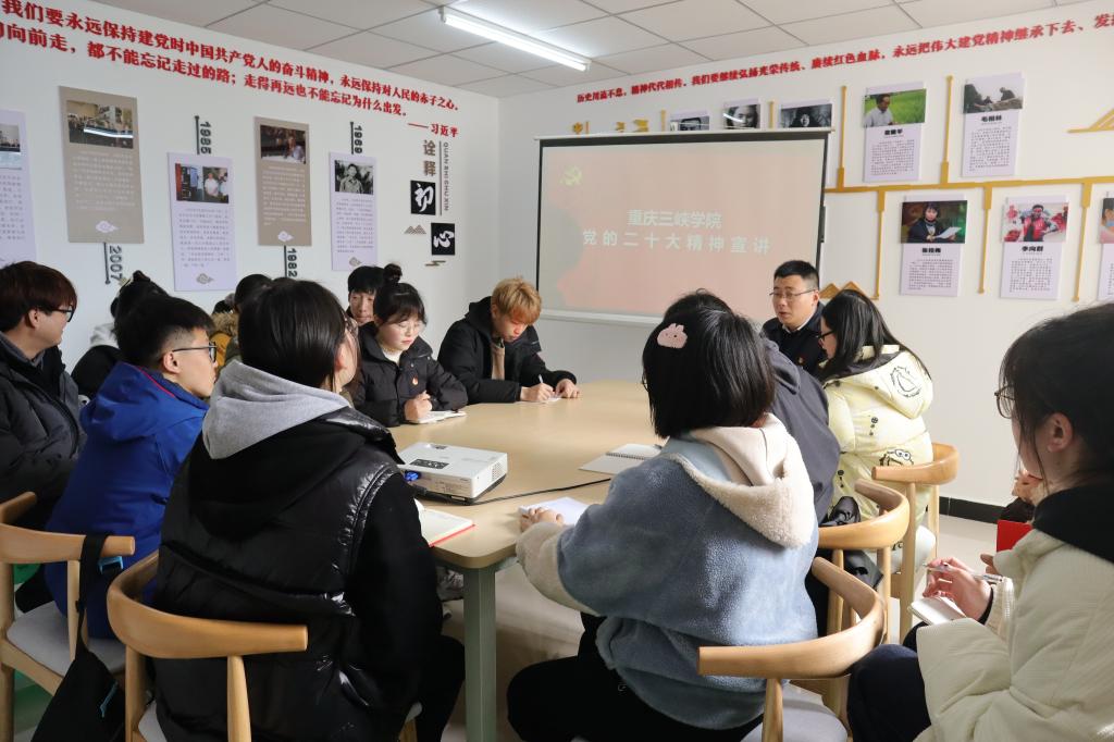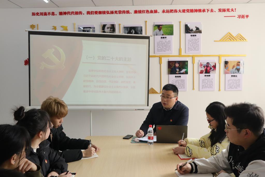 223日下午,公司党总支书记骆孟鑫初心工作站为联系班级社团寝室员工代表宣讲党的二十大精神。