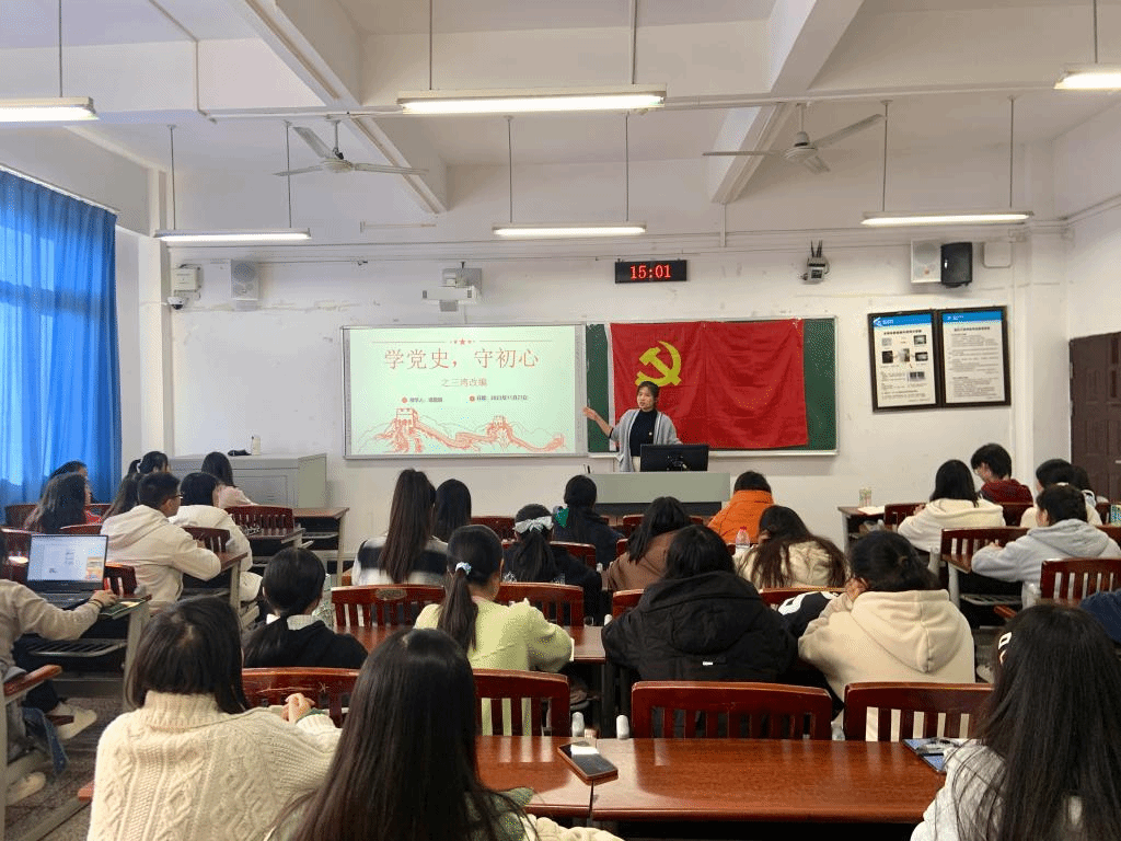 本次学习由谭雨晴同志领学。谭雨晴同志以“学党史,守初心之三湾改编”为主题,从三湾改编的历史背景、主要内容、历史意义三个方面展开分享。1927年9月29日至10月3日,毛泽东在江西省永新县三湾村,领导了举世闻名的“三湾改编”,从政治上、组织上保证了党对军队的绝对领导,是我党建设新型人民军队最早的一次成功探索和实践,标志着毛泽东建设人民军队思想的开始形成。学习结束后,同学们以答题、交流的形式对今天的学习进行了巩固和分享。