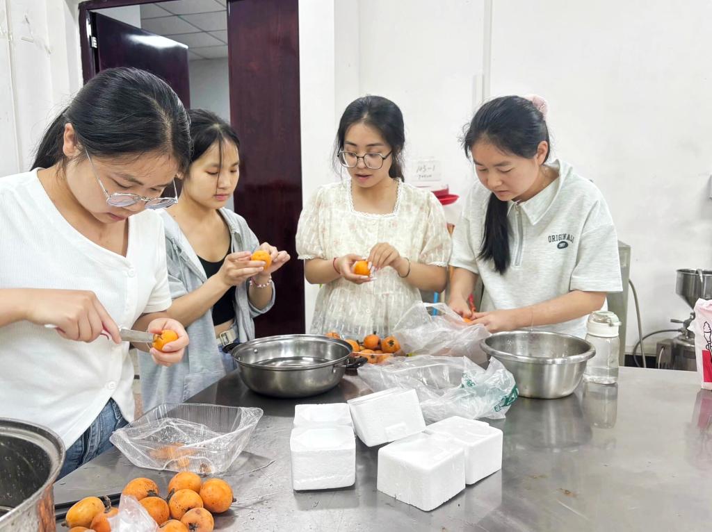 活动前,参与人员根据设备数量被分成四个小组,每组三人。活动中,大家热情高涨,积极投身实践中。一部分同学负责工艺前的准备工作,另一部分同学负责操作步骤,大家相互协作,共同完成了枇杷剥皮、熬煮糖汁、成品装罐等一系列工艺流程,成品精美。活动最后,大家纷纷表示这是一次富有意义的体验与经历。