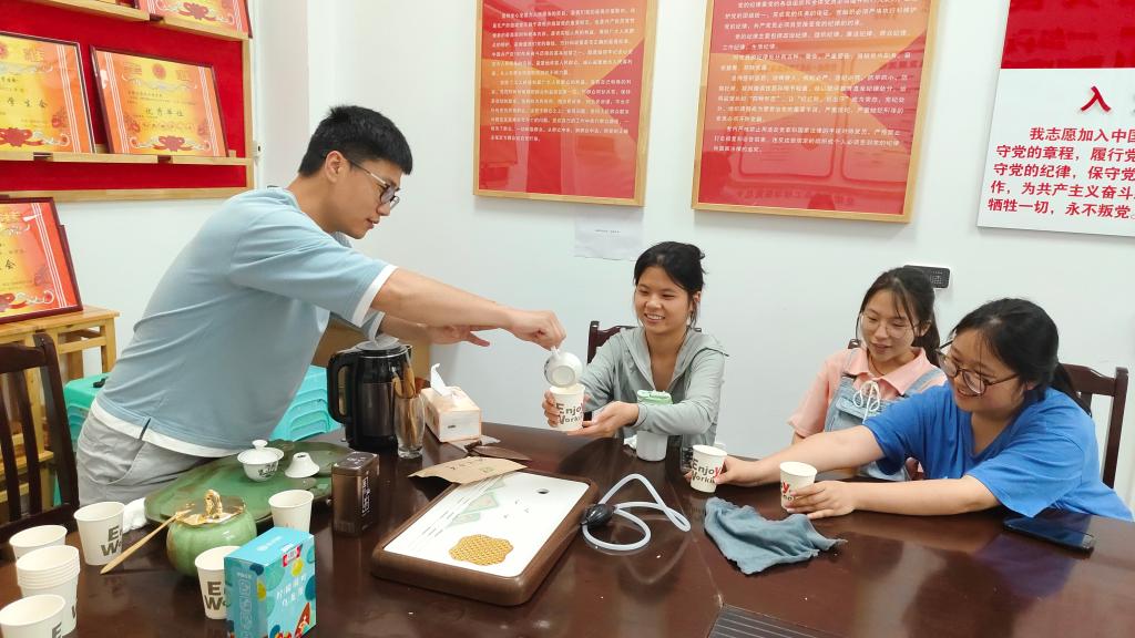 胡立盼老师从合理休息、合理的学习方法两个方面来引导同学们如何在合理休息的同时又不耽误学习。胡老师说:“当自己精神疲惫,注意力不集中时,会出现精神内耗,而面对真实的社会环境,只有自我合理分析才能走出困境。”此外,胡老师还给同学们分享了茶文化,在分享的过程中帮助同学们减轻心理压力。