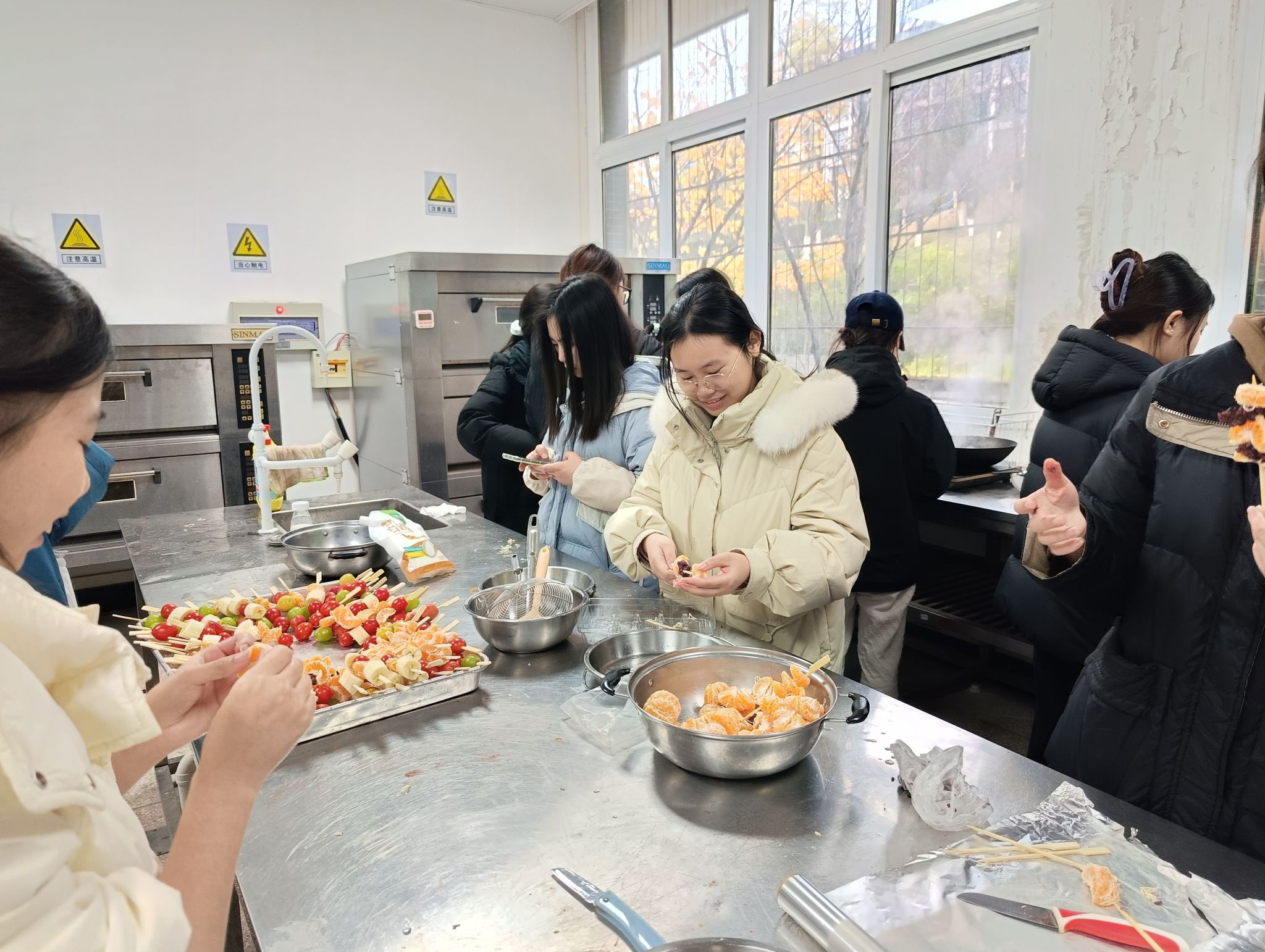 活动开始,向世琼老师首先为大家介绍了糖葫芦的发源、名字的由来、发展和寓意以及传统的糖葫芦制作工艺。活动中,向世琼老师鼓励同学们自己动手制作,亲自体验制作糖葫芦的乐趣,也鼓励同学们在传统的工艺基础下融入自己的想法,让传统工艺与现代创新理念相结合,对糖葫芦做出适当的创新,如添加不同的果蔬、改变糖葫芦的形状等。活动的尾声,同学们表示在本次活动中他们不仅缓解了压力,还在制作糖葫芦的过程中感受到了中华传统美食的魅力。