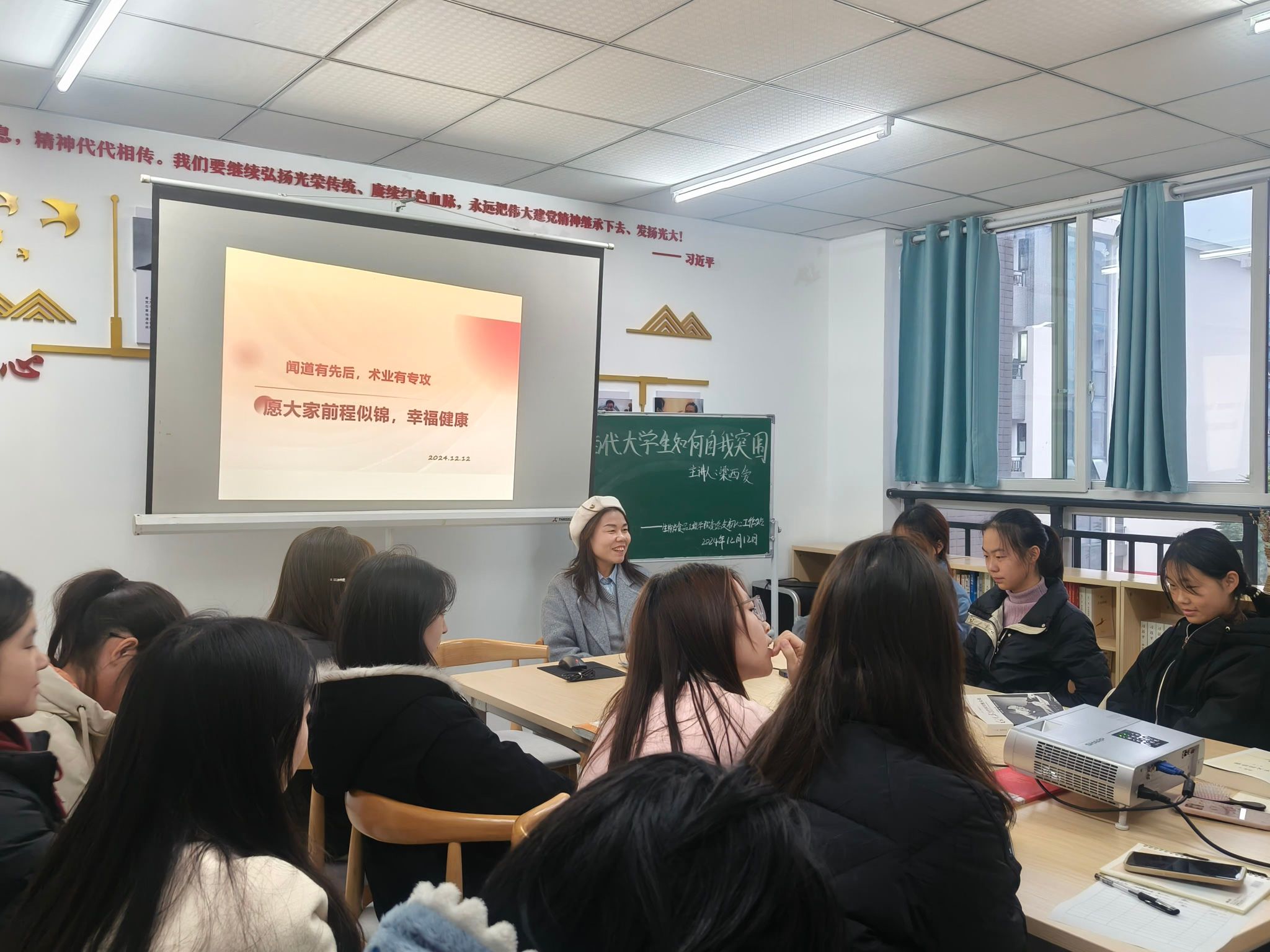 梁西爱老师从学业精进、筑牢基础,实践锻炼、积累经验,自我提升、塑造优势,人际关系、拓展人脉,规划未来、明确方向和保持积极心态、应对挑战这六个方面详细介绍了老员工自我突围的方向以及大学四年的自我规划。随后,梁西爱老师就自身经历告诫我们,在学业上,应制定清晰的目标与规划,不局限于课程要求,主动深入探索专业领域,积极参与科研项目与学术交流,锻炼思维与创新能力,为未来升学或就业筑牢根基。实践中,把握实习、社团活动、志愿服务等机会,积累社会经验,提升沟通协作与问题解决能力,例如参加专业相关实习,了解行业动态与职场需求,实现理论与实践结合。就个人成长方面,培养自主学习与终身学习意识,利用网络资源拓宽知识面,掌握新技能。同时,注重自我管理,合理安排时间,平衡学业、社交与娱乐,保持身心健康与高效学习状态。