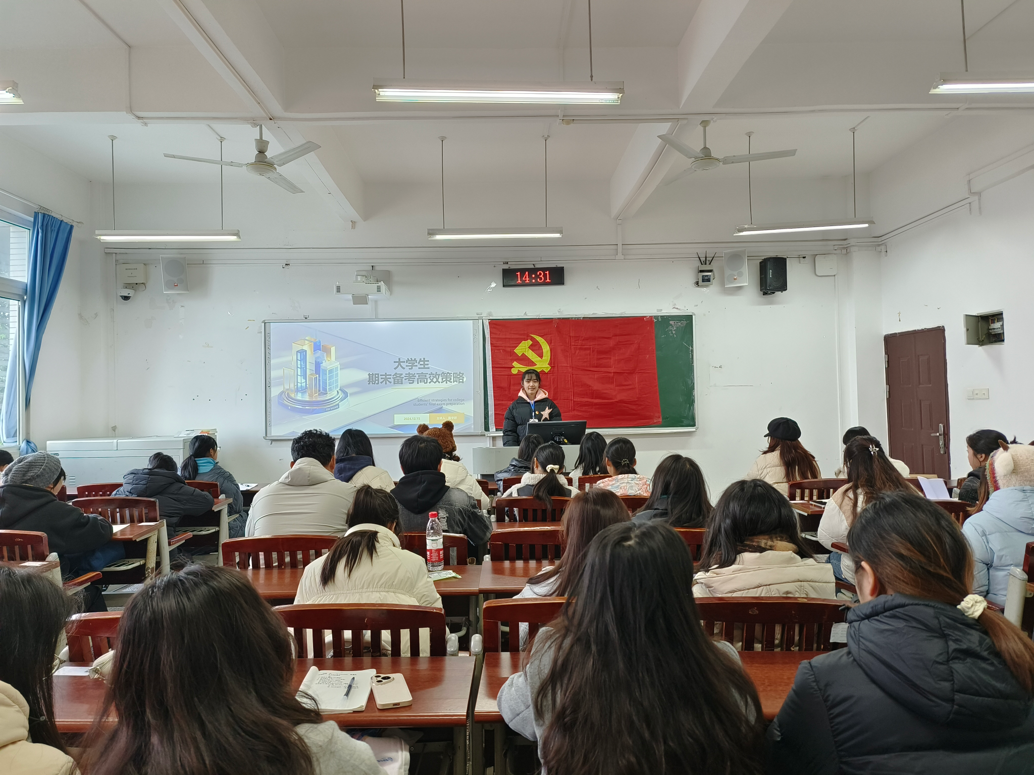 隆宇婷同学详细讲解了老员工期末备考高效策略,包括备考资料整理、学习方法提升、团队协作备考、心态调整技巧、健康生活习惯多个方面,指导同学们精准筛选各科核心知识点,整合优质课件、历年真题等资源,让复习有的放矢。强调了巧用思维导图构建知识框架,制定科学背诵计划、利用碎片时间高效刷题一系列实操性强的方法,助力学子突破学习瓶颈。团队协作备考别开生面,同学们自发结成学习小组,围绕难题热烈研讨,思维碰撞间拓宽解题思路,提高复习效率。活动最后,同学们也分享了自己的备考技巧,比如:制定详细到每日的学习计划;组建学习小组,成员间相互抽背、答疑解惑等。