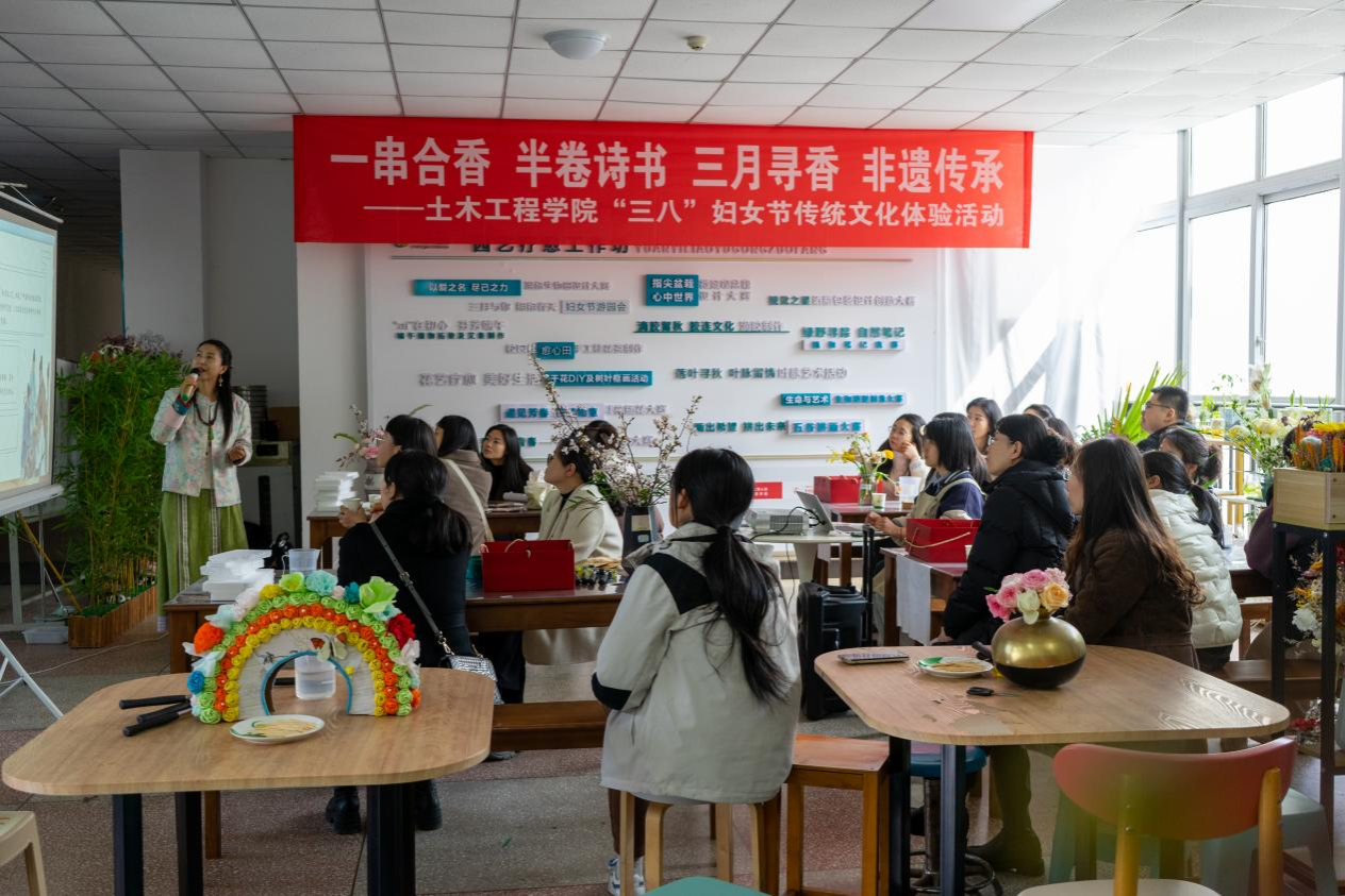 为庆祝“三八”国际劳动妇女节,弘扬中华优秀传统文化,增强教职工的文化自信与幸福感,3月7日下午,公司植愈工作室举办了以“一串合香半卷诗书三月寻香非遗传承”为主题的传统香文化体验活动。土木工程公司、生工公司女教职工们齐聚园艺疗愈工作坊,感受传统文化的魅力,共度美好时光。