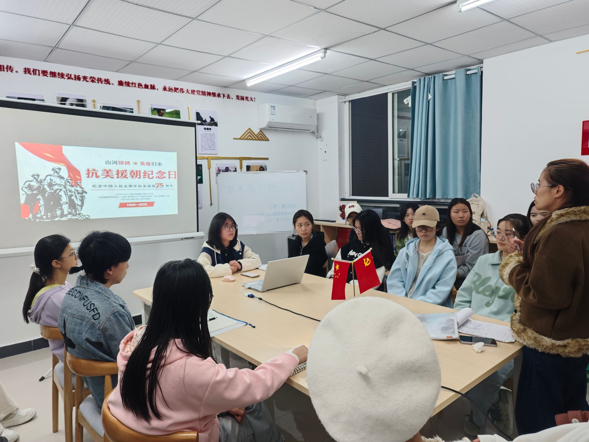 10月25日20:00,公司初心工作站在蓝雾苑2舍4楼活动室开展第18期“主题教育”活动,魏瑶瑶同学带领大家学习抗美援朝纪念日,共计21人参加。