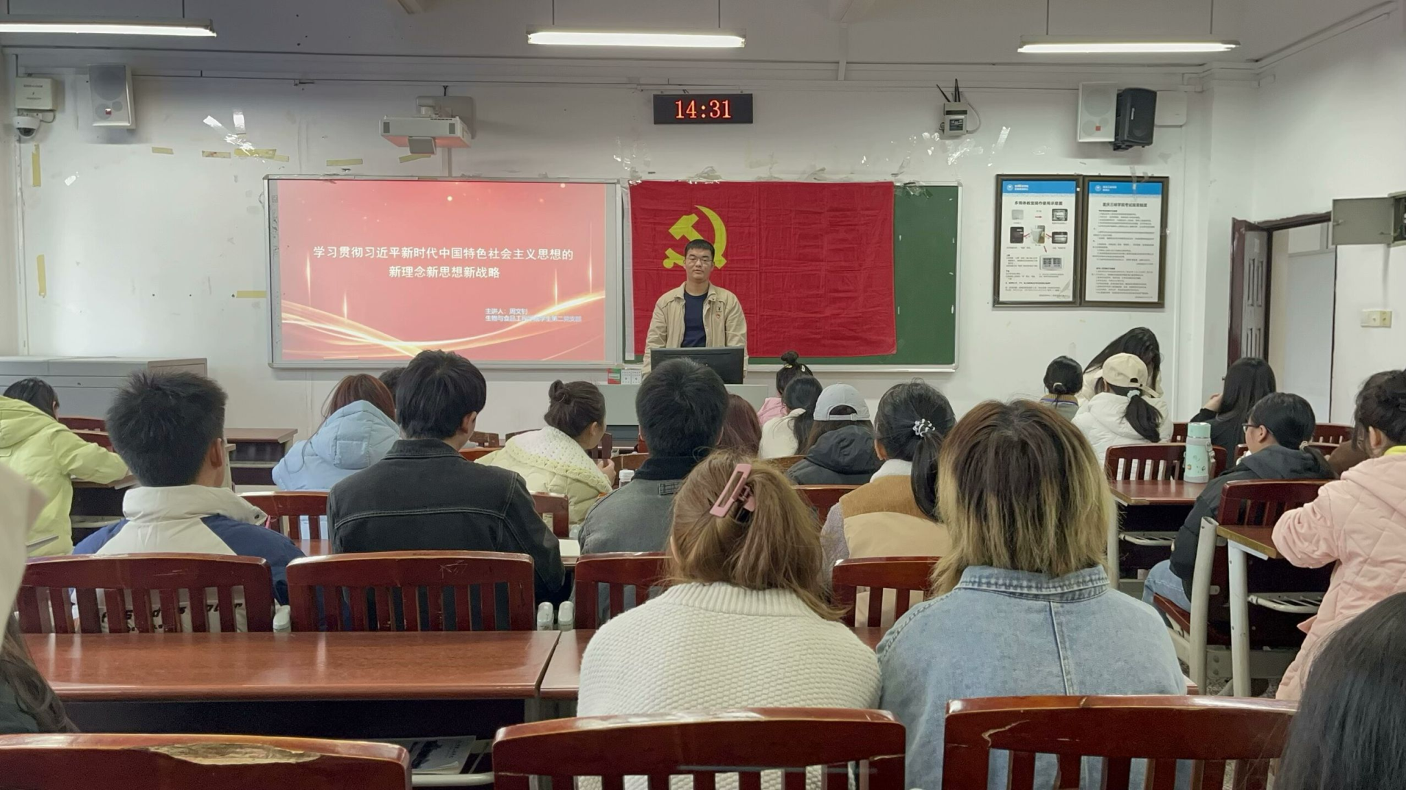 周文钊同志深入剖析了习近平新时代中国特色社会主义思想创立的时代背景,从国际风云变幻、国内改革发展关键节点出发,阐述我国面临的机遇与挑战,明晰思想诞生土壤;解读了习近平新时代中国特色社会主义思想的科学内涵,围绕经济、政治、文化等多领域关键论述,梳理理论架构,领悟核心要义;阐释了习近平新时代中国特色社会主义思想的重大意义与历史地位,彰显其对民族复兴、全球治理等层面的深远影响力,号召同学们紧跟时代步伐,明晰国家发展大势、方针政策,洞悉国际国内复杂局势并深入理解时代赋予青年的使命担当。