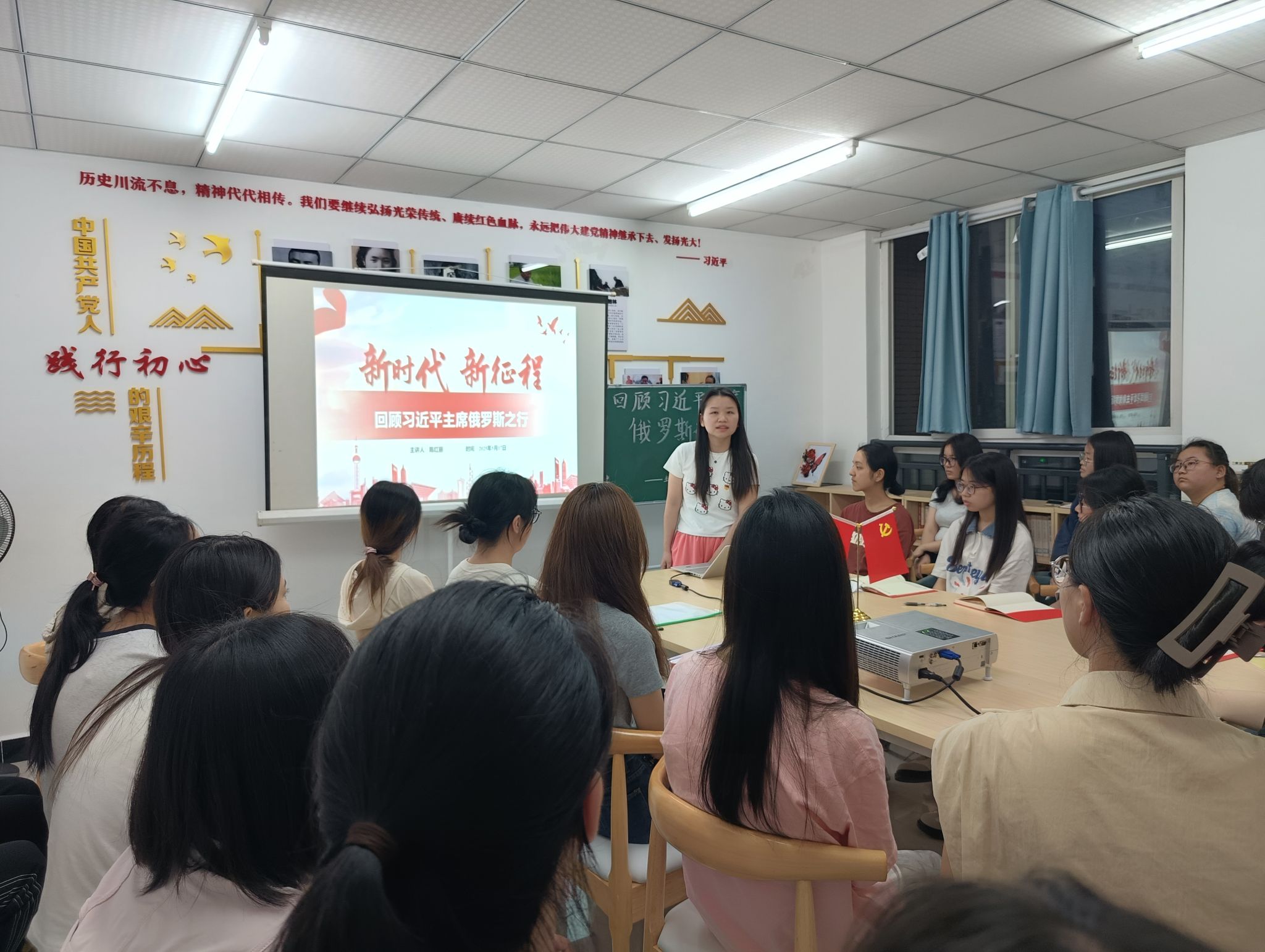 为深入学习贯彻习近平外交思想,深刻领会新时代中国特色大国外交的核心要义,5月17日19:30,公司初心工作站在蓝雾苑2舍4楼活动室开展“理论学习”活动:陈红丽同志带领大家回顾习近平主席俄罗斯之行,共20人参加。