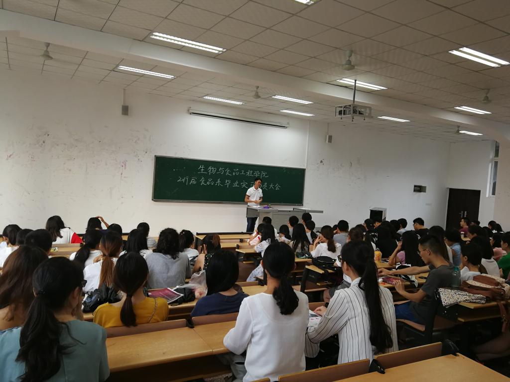 2018年6月19日,为了确保2015级食品系即食品科学与工程专业和食品质量与安全专业的员工能良好完成毕业实习,公司于新二教101召开食品系毕业实习动员大会。大会由示范中心主任曲留柱主持,公司党总支书记谭力、副经理周浓、学工办主任李华林等出席大会,并做动员讲话。谭力书记从实习目的意义的阐述,到公司企业相关规章制度的前期学习,再到意识形态把控,遵纪守法,拥党爱党,最后重点突出在人身安全、财产安全、生活安全等几个方面对员工提取了良好的建议和要求。周浓副经理阐述了毕业实习的工作特点和性质,要求员工在实习中摆正姿态学习做人做事的道理,即通过实习实践理论知识,提升实践动手能力,提高综合能力等为未来就业做好准备。主管毕业实习工作的曲留柱老师着重强调外出实习代表着公司公司的形象,倡导员工严格要求自我,并对实习期间需要完成的相关实习考核指标和工作安排等做了说明。