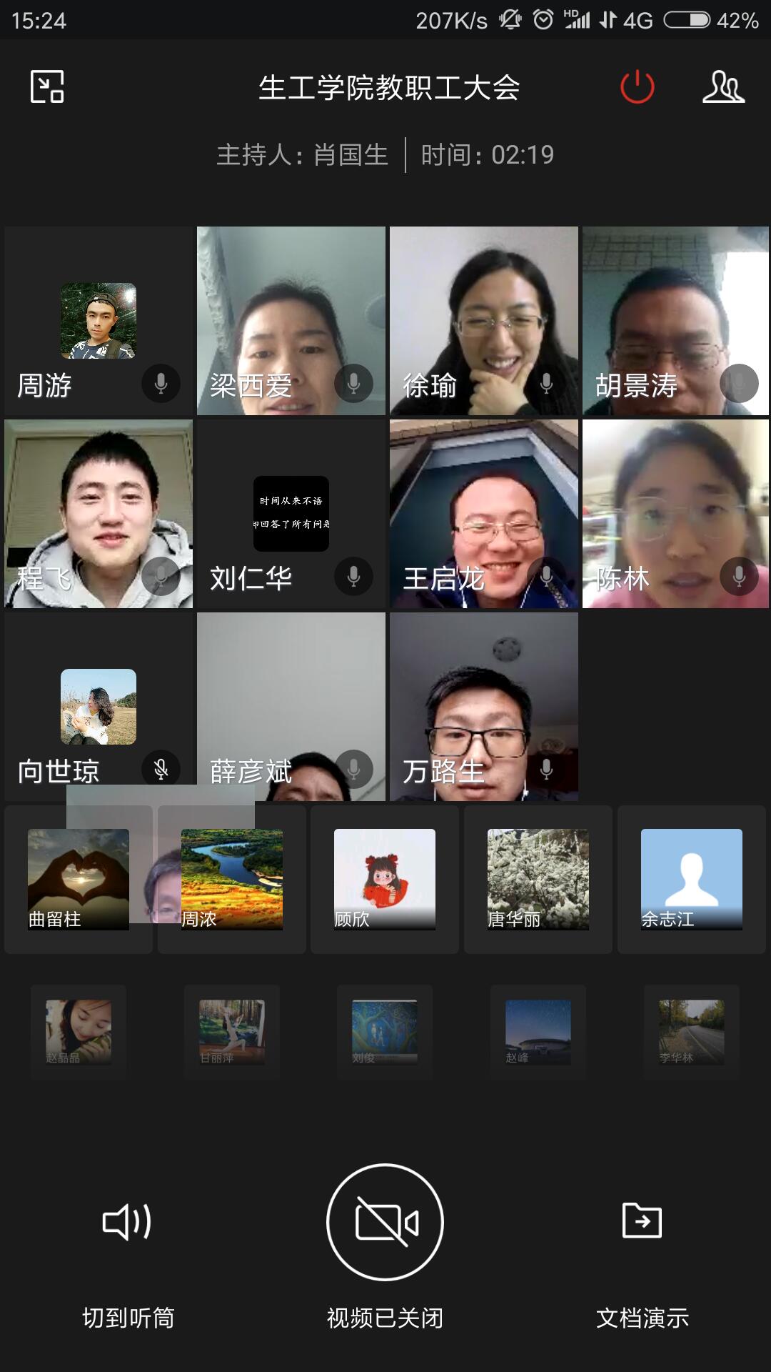2020年2月23日下午15:30-17:00,为推进“2019-2020学年第2学期疫情防控期间本科生在线学习”教学准备工作,保障生工公司“停课不停学”教学质量,生工公司组织全体教职工50人,通过企业微信平台,召开了2019-2020学年第二学期第2次教学工作会。