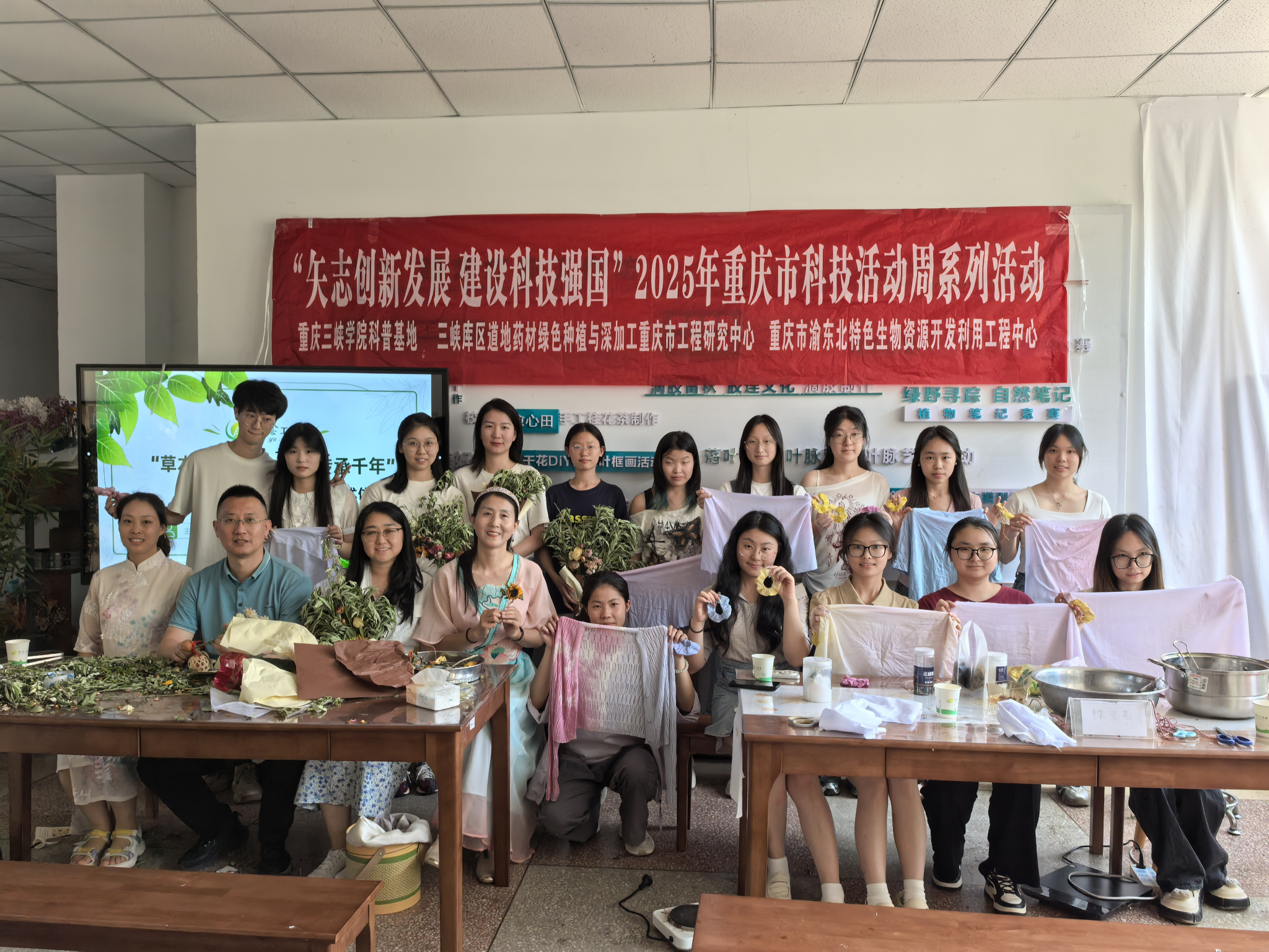在科技活动周期间,437bwin必赢国际、三峡库区道地药材绿色种植与深加工重庆市工程研究中心共举办科普活动6场,主题分别是“草木染色绘锦,匠心传承千年”植物扎染活动,“香韵悠长,古意绵延”合香文化科普,“肠道菌群与体重管理”科普,“神奇的海洋微生物”科普,“红橘家用技术”科普,“药食两用植物”科普,共计约500名师生参加。
