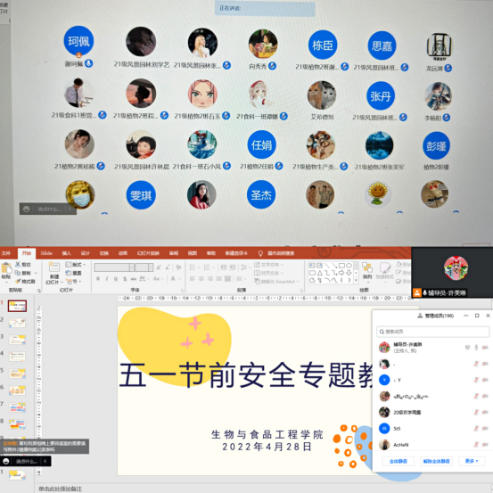 会后,学工办全体辅导员分年级召开五一节前线上安全专题教育会议,传达公司五一假期员工安全管理要求,并就防溺水、防诈骗、防盗、消防安全、交通安全等作强调。(熊小飞)