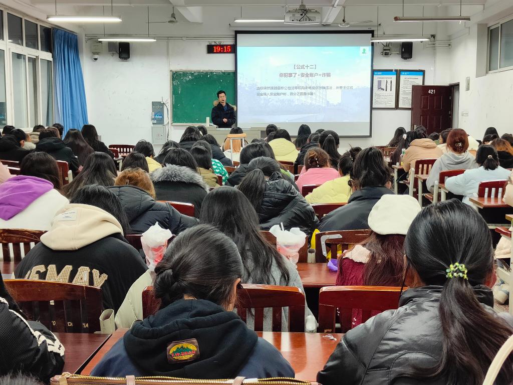会上,辅导员们通过讲解反诈的十二条公式,向同学们介绍了相关的诈骗手段和防范措施,帮助同学们识别电信诈骗中多种多样的作案手段,自觉增强防范意识。同时,辅导员们简要概述了一些典型的诈骗案例,指出了诈骗通常以刷单、冒充电商客服、游戏账号交友、快递补偿等复杂形式进行。他们建议同学们在涉及转账等行为时要保持谨慎态度,学会判断是否存在诈骗,并学会与老师、同学和家长商量,谨记“天上不会掉馅饼”。最后,辅导员推荐了一部反诈主题电影《孤注一掷》,再次提醒同学们要提高警惕,避免成为诈骗的受害者。