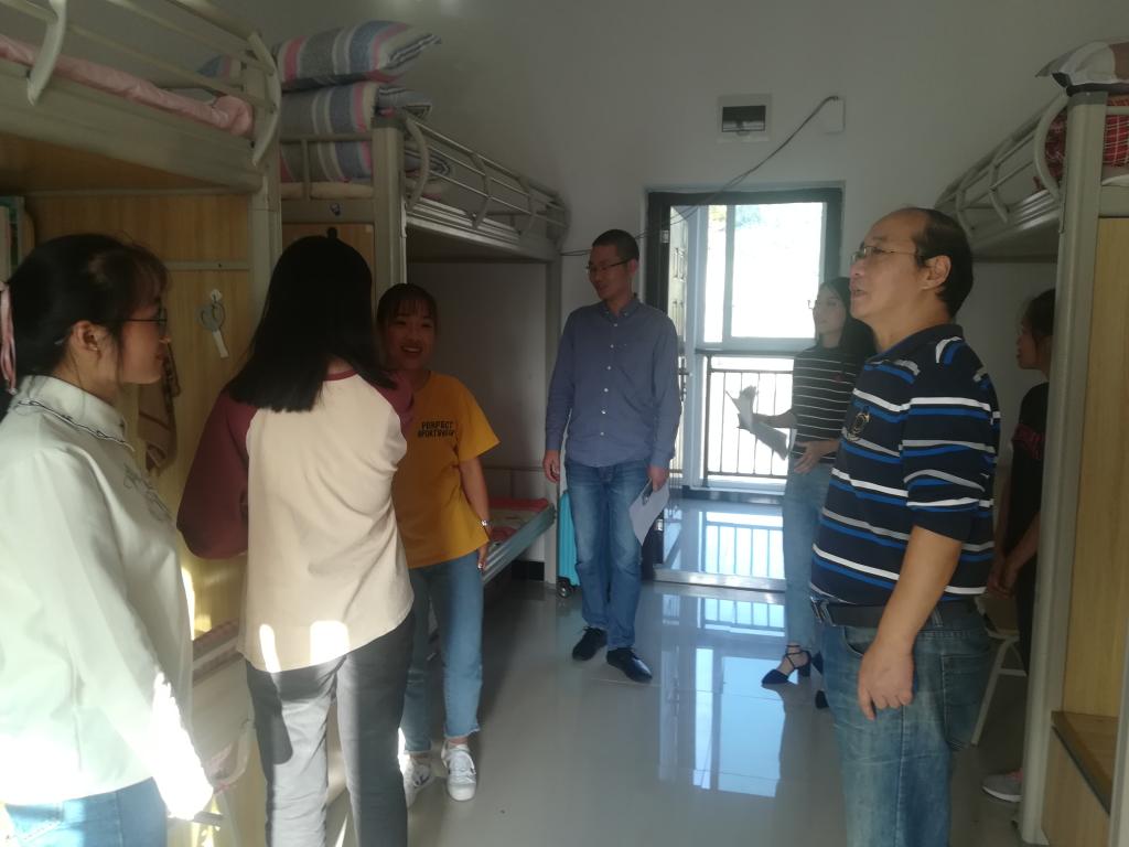 谭力书记查访员工寝室,关心地询问同学们的学习及生活情况,提醒同学们注意寝室用电安全等问题并对寝室卫生提出要求。通过交谈,谭书记了解到同学们的生活日常,亲切地与同学们分享他的老员工活,给同学们送去了国庆问候,并提醒大家注意节日安全。