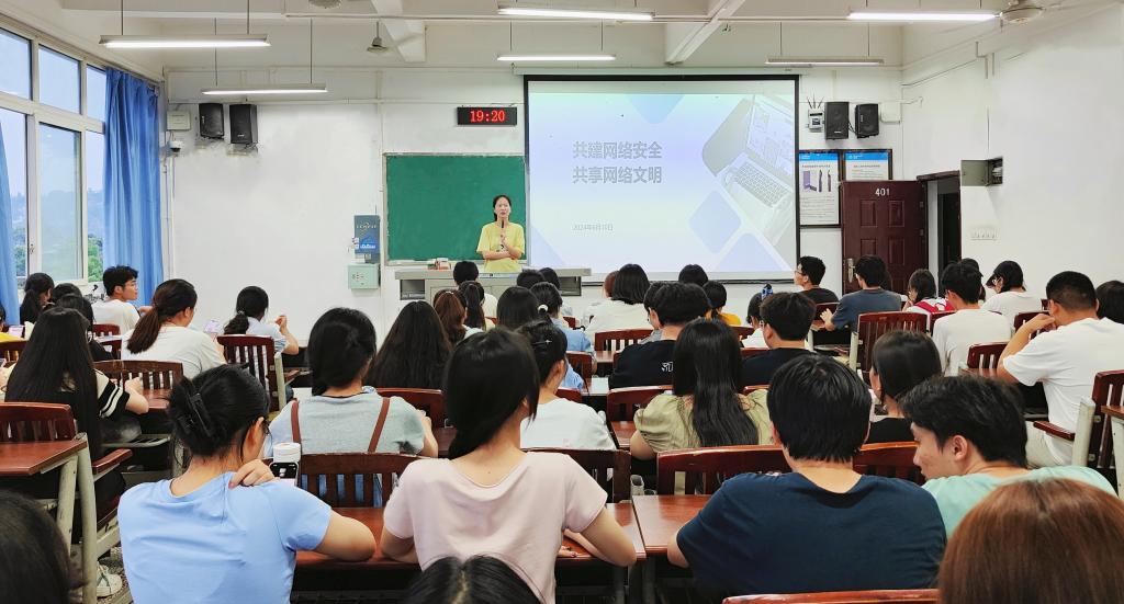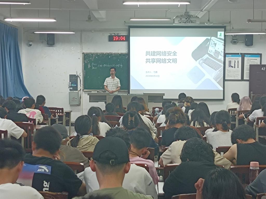 会上,辅导员从网络安全概述、常见网络风险及防范措施、校园网络安全管理要求与规范三个方面开展网络安全和网络文明教育,引导员工提高网络安全意识,倡导员工自觉遵守网络秩序,文明上网。