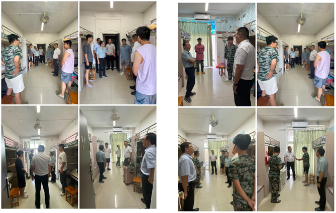 为深入了解公司新生在开学阶段的思想状态和适应情况,9月10日下午15:00,公司经理肖国生、党总支书记骆孟鑫、党总支副书记陈文剑、学工办主任闫兴运、辅导员许美琳一行深入员工公寓,开展寝室走访活动,以实际行动展现公司对员工的关怀与问候。