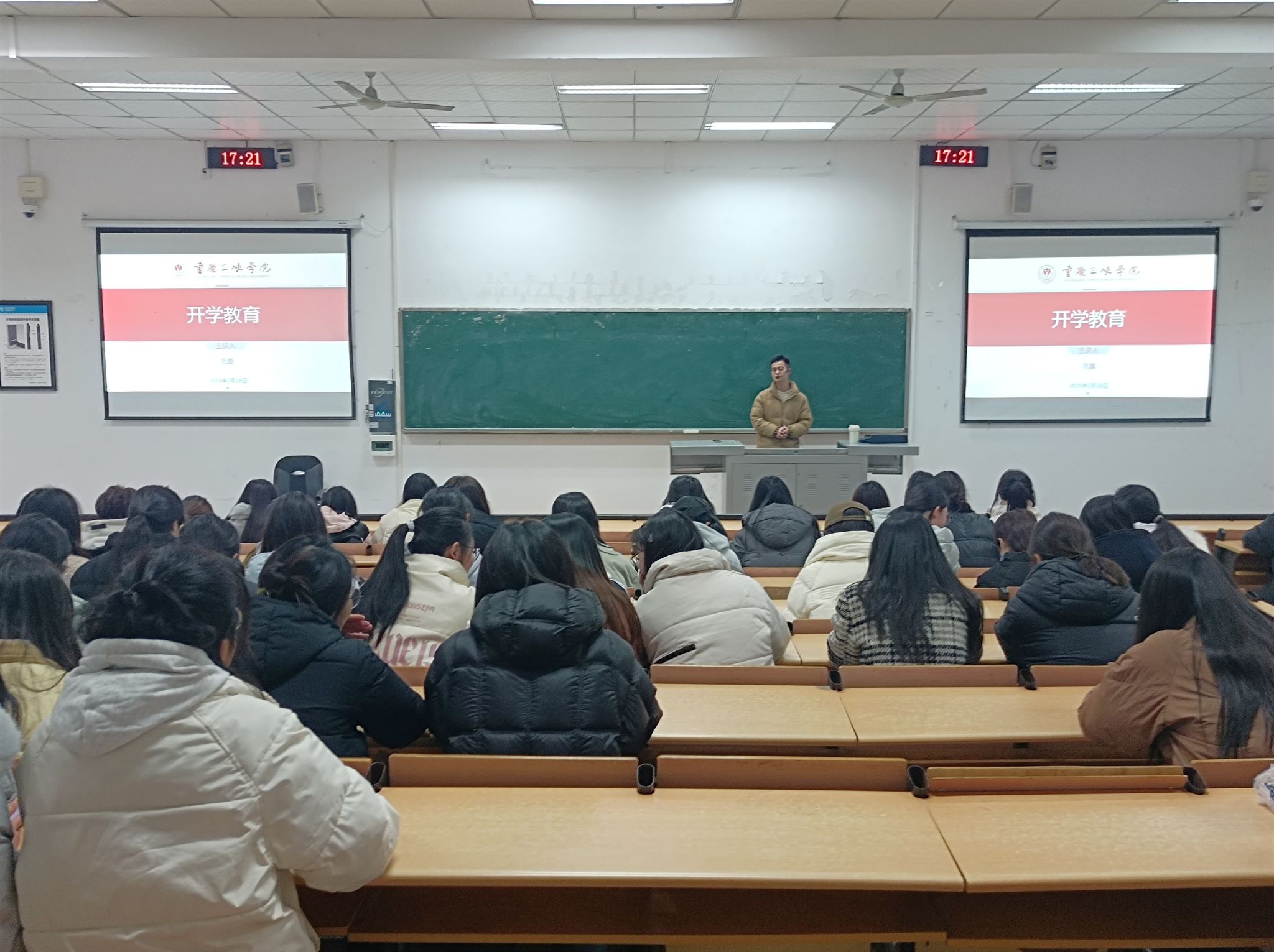 会上,辅导员强调了调整状态、快速进入学习节奏的重要性,引导同学们收心归位,制定合理的学习计划,以饱满的热情迎接新学期挑战。辅导员开展了校园安全教育,引导同学们增强安全意识,注意人身安全、财产安全、消防安全、交通安全,谨防电信网络诈骗,筑牢校园生活防线。辅导员开展了心理健康教育,鼓励同学们关注自身成长,积极面对学业压力与人际关系,及时疏导负面情绪,以理性平和的心态迎接新学期的学习和生活。