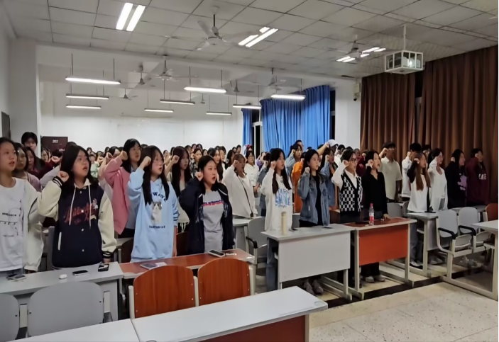 培训大会开始前,由青鸳志愿团的六名工作人员表演手语操。培训正式开始,青鸳三名负责人分别对“青鸳简介与志愿精神”、“青协的相关活动”、“活动注意事项”等三个方面进行讲解。随后,由一些志愿经验丰富的同学进行心得分享,传授了丰富知识和实用的技能。紧接着是答题环节,参会人员积极参加,踊跃回答问题。活动最后,全体参会人员举起右手,进行庄严宣誓,正式加入青年志愿者协会。