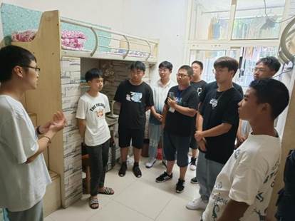 新生参观了公司星级寝室、特色文明寝室、内务整理优秀的寝室,以达到互相学习和创建文明寝室的目的,共建温馨、和谐、美好宿舍环境。首先,21级各班男女生各1人代表去参观公司的两个星级文明寝室和四个特色文明寝室,每个寝室都会有五分钟的寝室介绍,参观完后又会有21级各班两名男生和两名女生的各班代表去轮流参观新生军训中内务整理优秀的14个寝室。