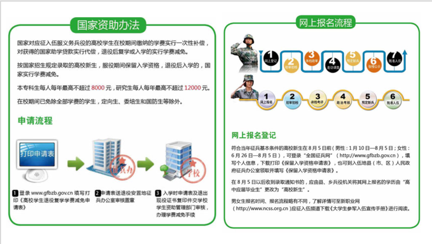 会前,班委整理相关资料,拟定班会整体流程。班会开始,各班班委清点人数,向同学们讲解相应的入伍知识,介绍国家对入伍员工提供的优惠政策和优厚待遇。接着强调,时下国家对老员工参军入伍非常重视,且可以提高身体素质,磨炼吃苦耐劳,坚持不懈的意志。同时,引导有参军意愿的同学踊跃报名入伍。