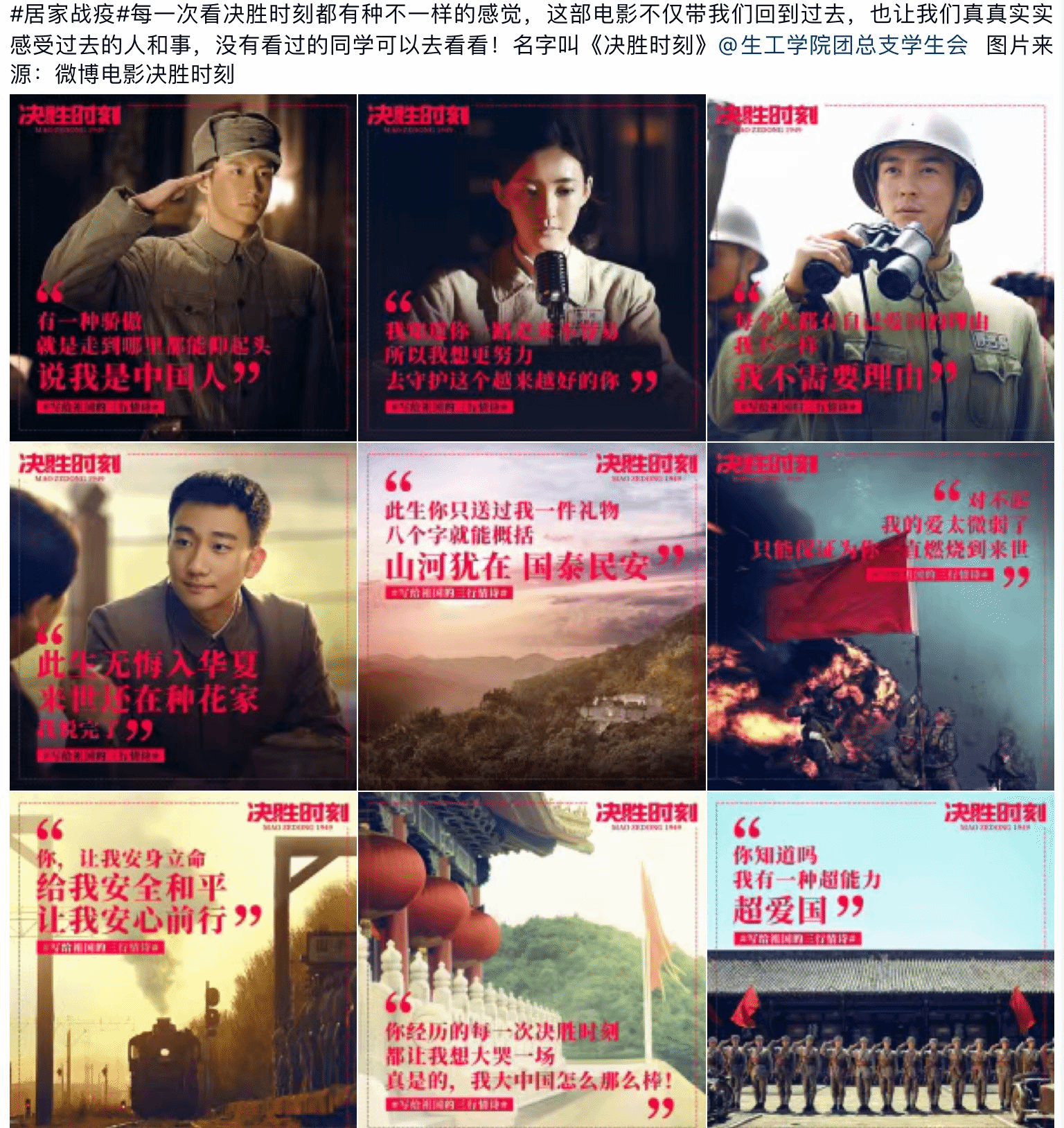 4月18日,公司发布第十九弹打卡活动——电影赏析。公司向同学们推荐了六部爱国热血电影,同学们既可以通过观看爱国影片,体会祖国走向强盛的曲折历程,也可以观看喜爱的电影,帮助自己排遣学习压力,积极面对生活。观影后,同学们对自己观看的影片进行打卡分享,感受电影带来的不同的体验,并带动身边的人参与到活动中。随后,公司团总支员工会公众号将同学们的观影汇总,带领同学们重温红色回忆,感受家国情怀,并激励同学们以赤子之心投身于新时代中国特色社会主义的伟大事业中去。