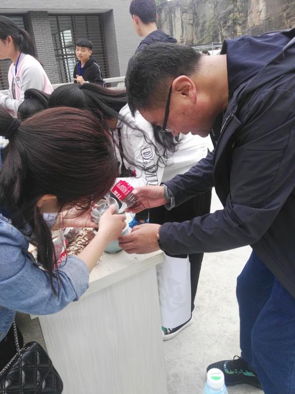 整个系列活动持续一整天,效果良好。参加微型盆栽大赛的8组选手自选材料、自行设计创意、自己动手栽种,历经一个半小时的现场创作,八组作品不仅外观美,而且创意美;既有表现山水的、风景园林的,也有表现家庭、同学、师生情谊的,引来了不少师生驻足观摩。另外,以“最强记忆”和“全是套路”呈现的多肉游戏环节也让师生们在欢乐中学到了一些多肉栽种和养护常识。
