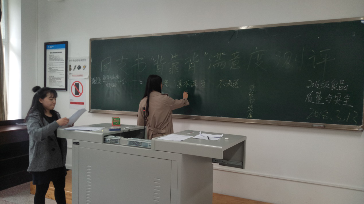 测评开始后团委员工会组织部干事给大家讲解测评流程,并分发试卷。每个团支部青年团员自行填写测评表。待团员填表结束后,干事们将表收齐,并由本团支部的团员们选择一名在团内没有担任任何职务的普通共青团员进行唱票,以确保公正性。唱票情况公示在黑板上,最后计算出每个团支部书记的满意度。