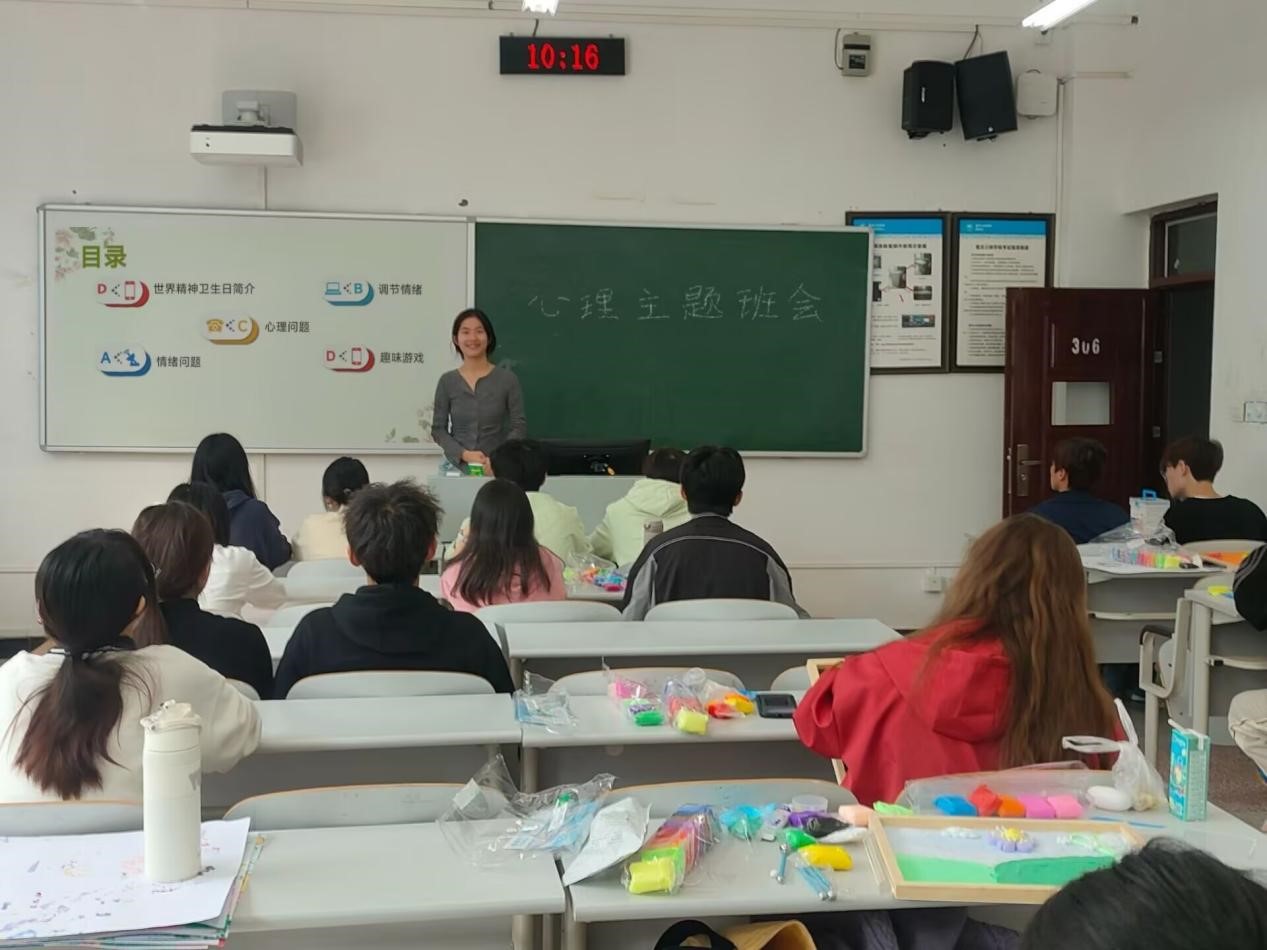 各班心理委员介绍心理健康相关问题,聚焦员工心理健康与青春成长,与班级同学积极互动,开展解压小游戏,深入探讨了解如何面对学习、人际关系等常见心理健康问题,旨在引导同学们以积极乐观的心态面对学习与生活中的挑战,鼓励大家在未来的日子里继续保持阳光向上的心态。