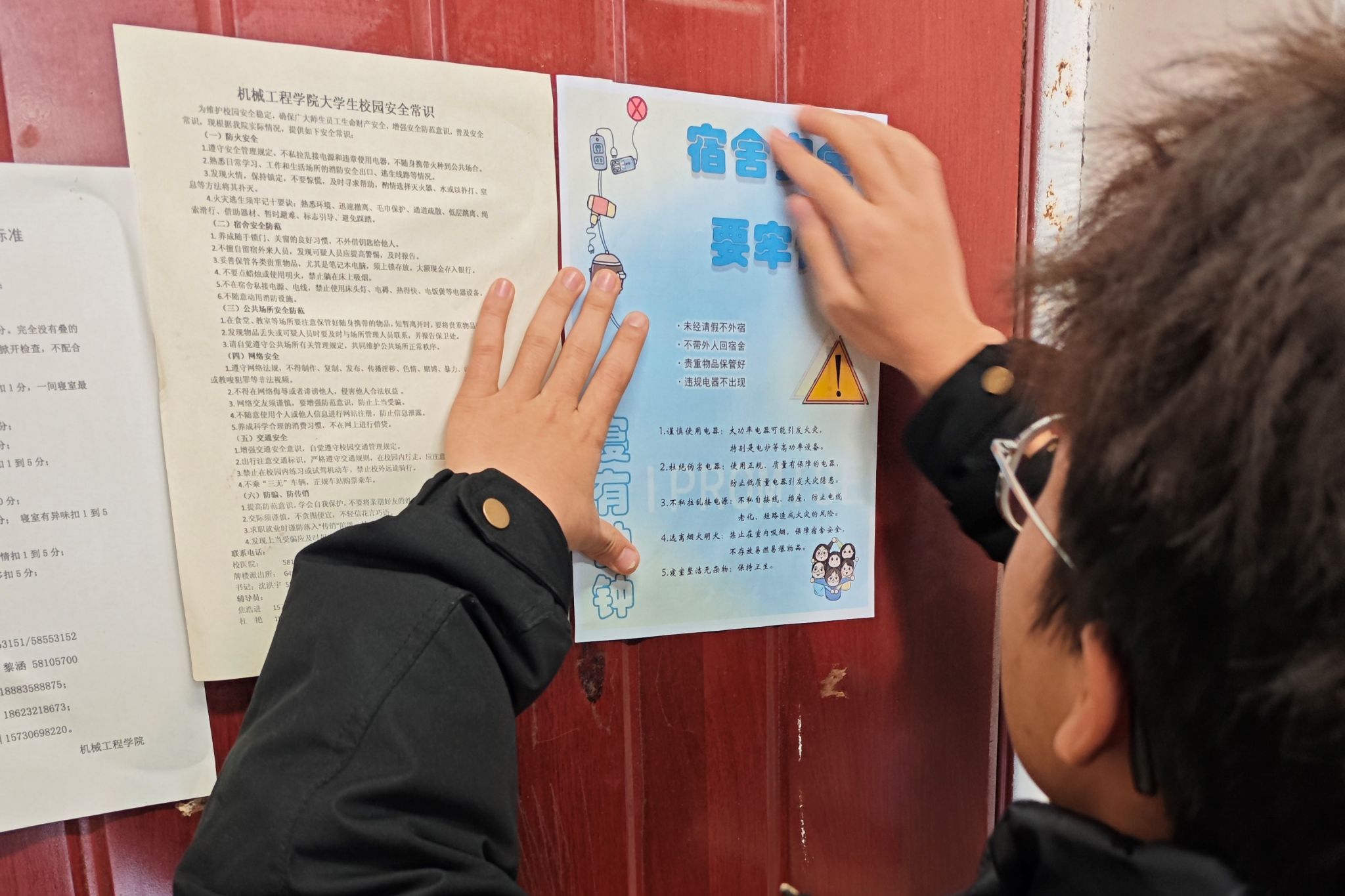 为增强同学们的消防安全意识,营造安全舒适的寝室环境,12月12日,公司员工会生活实践部组织开展了寝室消防安全海报张贴活动。