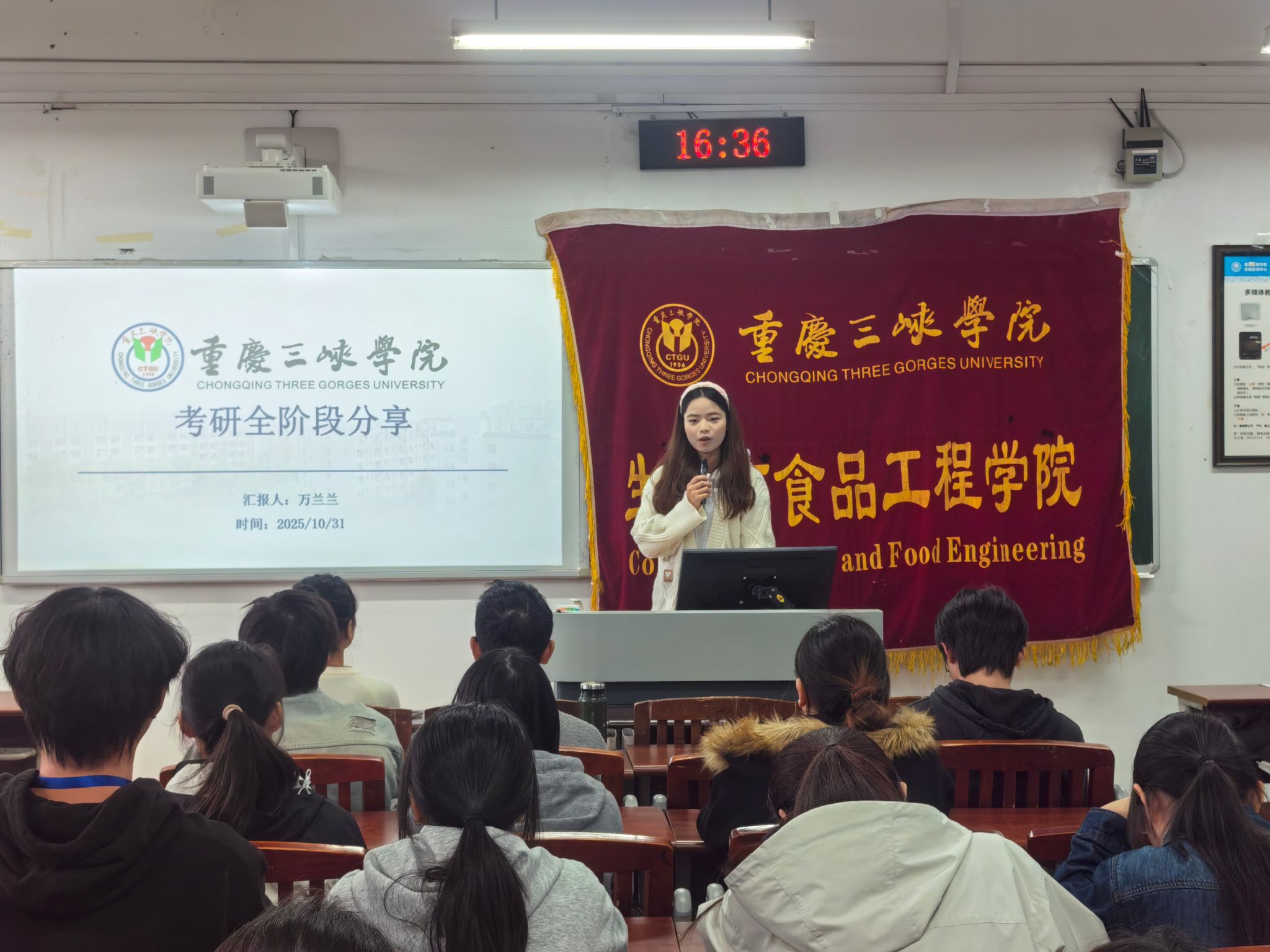为助力2024届备考学子提前规划考研方向,2025年10月30日下午,公司老员工科技协会于明辨楼1-303教室举办“以梦为马,一战成硕”考研月主题宣讲活动。此次活动邀请了来自不同专业的4位研究生学长学姐担任主讲嘉宾,共计40余名学子听讲。