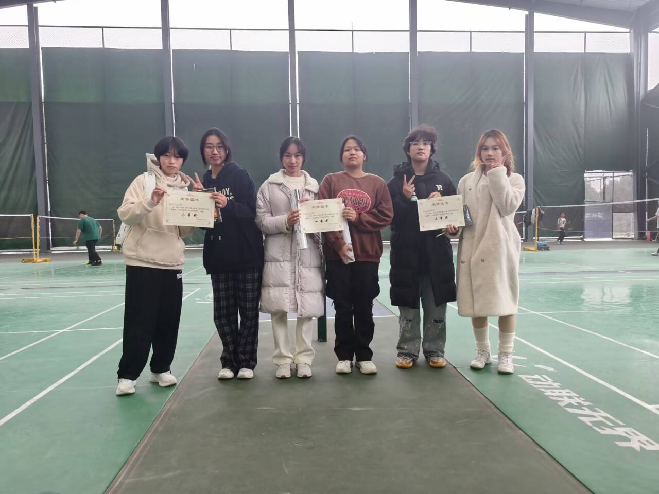 女双:第一名 柳婷娟、罗应莎;第二名 张蓝馨、黄语嫣;第三名 蔡明仿、余明聪