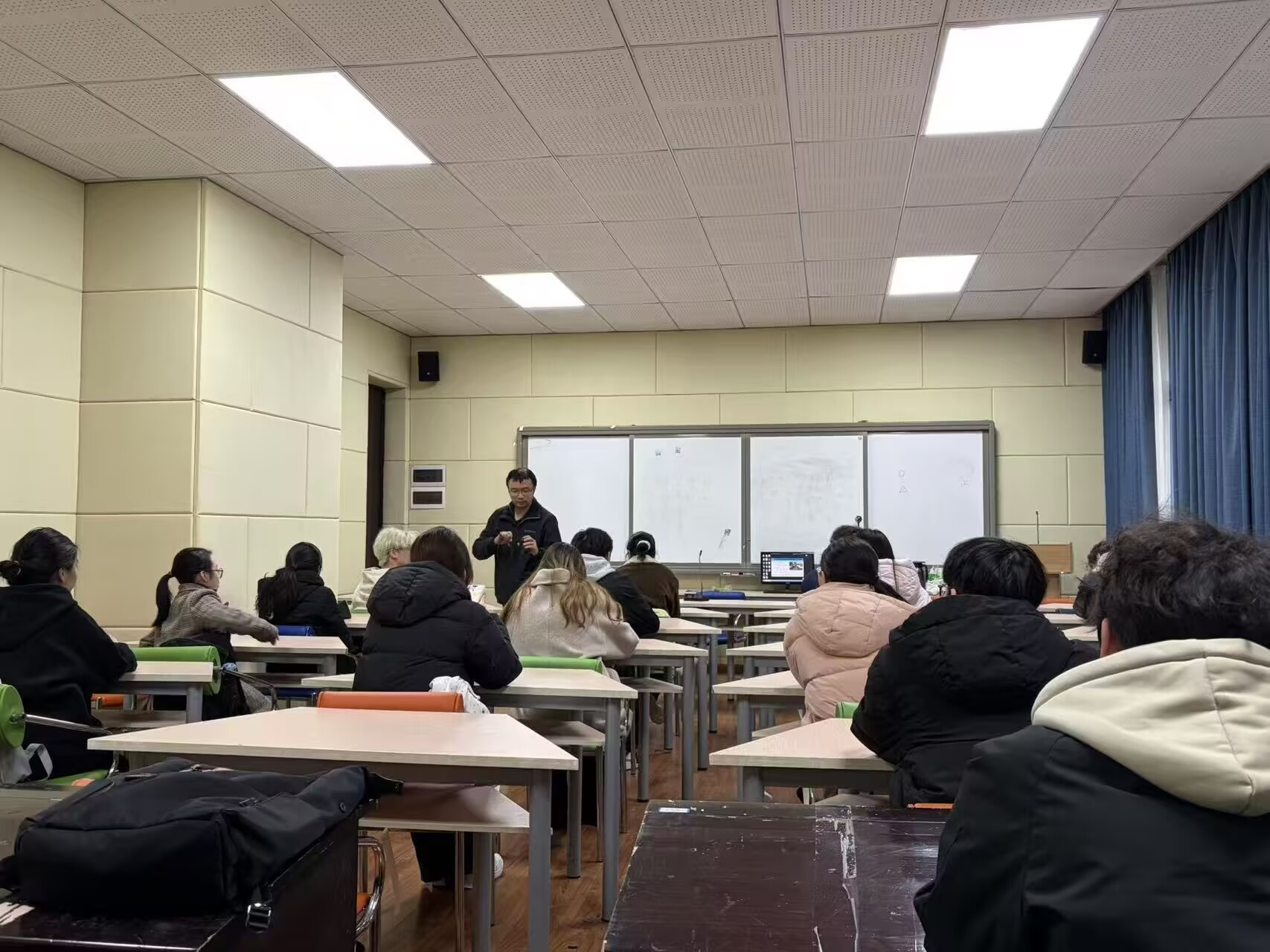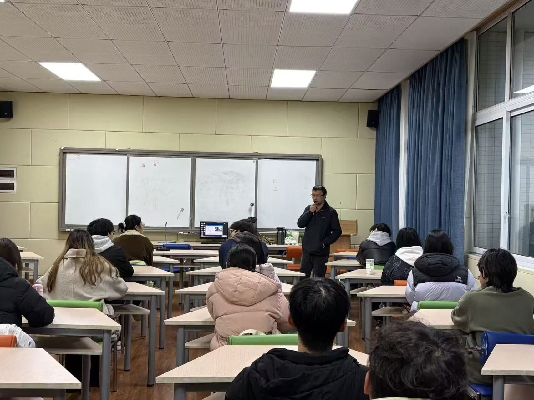 2026年3月24日,公司第16期“师长领航,朋辈同行”领导干部联系班级活动在慎思2-216室举行。公司经理汪开拓担任主讲,2024级食品科学与工程2班全体同学参加。