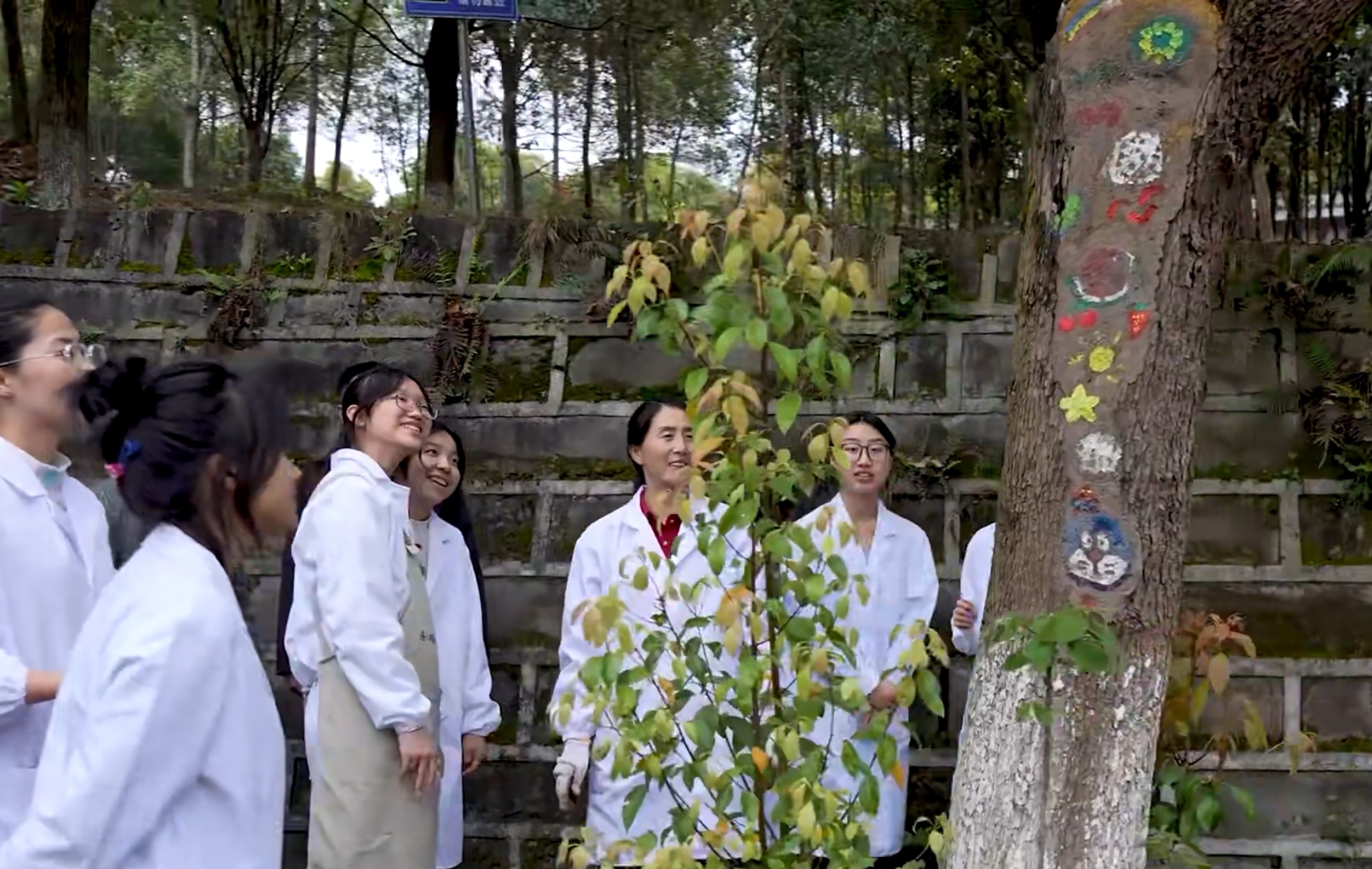 活动从接到后勤求助开始,公司学子分组对病害树木进行诊断,制定综合治理方案。在甘丽萍老师带领下,大家运用施肥枪精准改良土壤、配制环保泥浆处理树干伤口,并创新性地对树洞进行艺术性彩绘修复,实现救治与美化的有机统一。