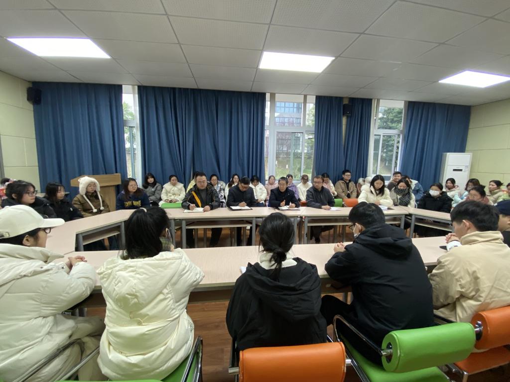 为缓解员工考研压力,增强考研信心,公司于12月19日下午16:30在慎思楼2栋216室开展了考研员工考前交流会,公司经理肖国生、副书记陈文剑、副经理汪开拓、学工办主任闫兴运、辅导员许美琳,以及2024届考研员工,共计65人参会。