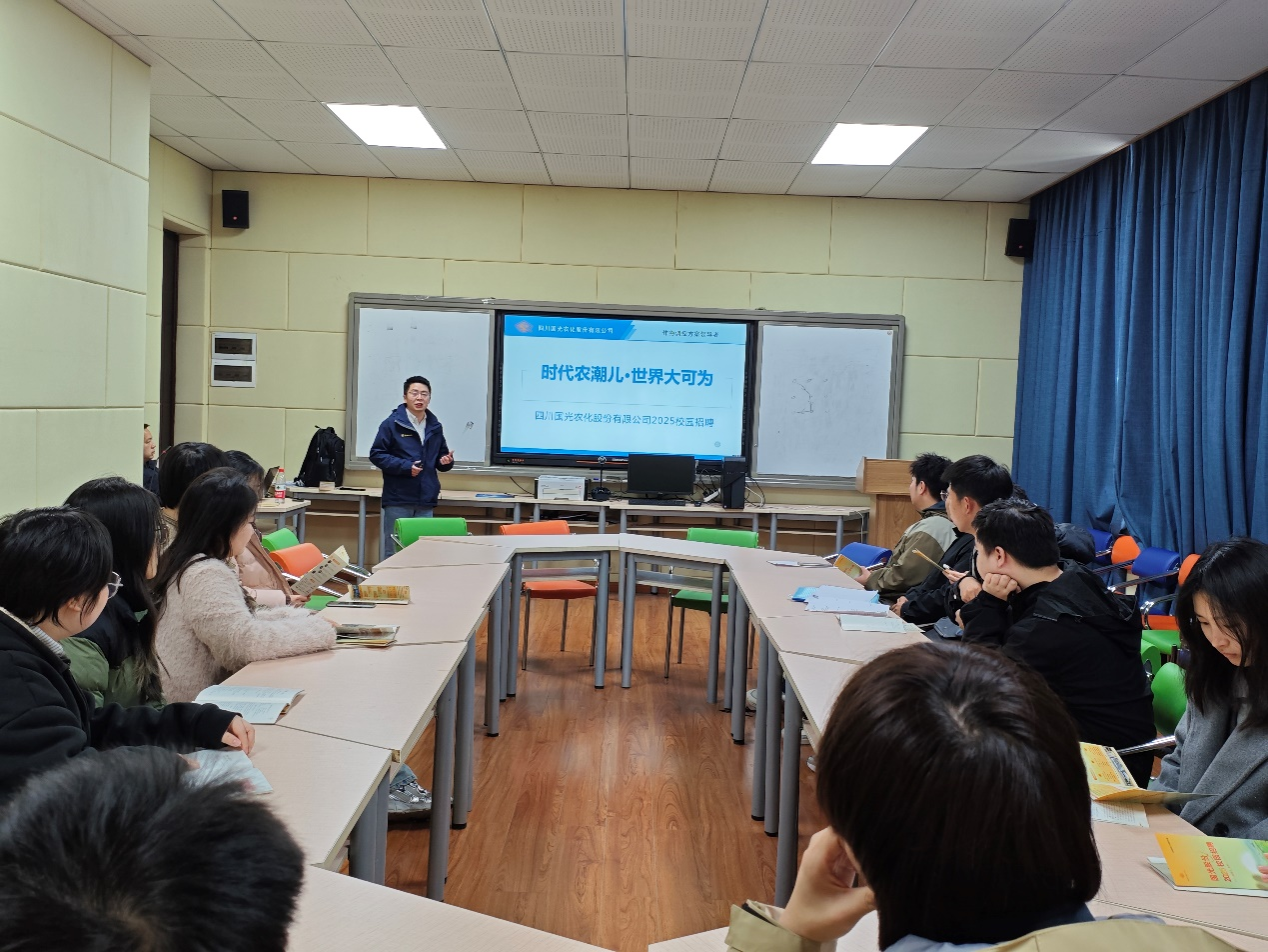 2025年3月14日14:00,公司于慎思楼2栋216召开四川国光农化股份有限公司专场招聘会及实习宣讲,此次招聘面向2025届、2026届毕业生,共50余人参加。