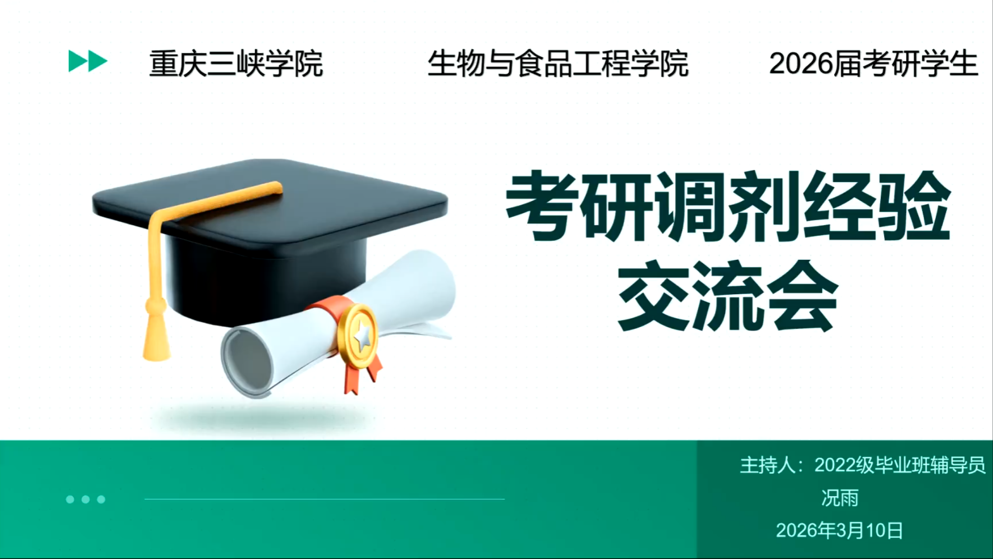 为帮助2026届毕业生更好地应对考研调剂,3月10日晚,437bwin必赢国际通过线上平台举办了考研调剂经验交流会。活动由公司毕业生辅导员况雨主持,邀请三位2025届优秀毕业生肖艳、刘亚岚、任娟分享调剂经历与备考心得,吸引了众多正在准备调剂的同学参与。